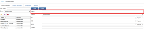 After the template has been created you will be able to change the name, add a default subject for the template, assign it to the proper owner (if not already done), and much more. You will also now be able to save the template and any changes by clicking on the save button.