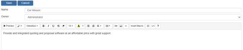On the toolbar of the Snippet editing window is the Macro button. This button allows you to choose from any of the available macros in QuoteWerks and add them into your Snippet. To preview the template with the selected macros applied click on the Preview button.