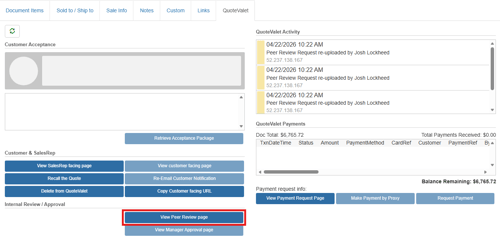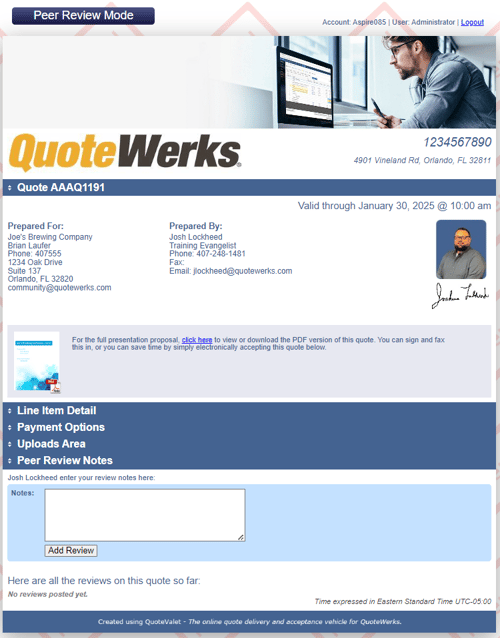 You can initiate a QuoteWerks Peer Review request in one of two ways: