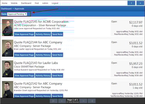 Once a document has been approved, it will no longer appear under the "Approval Pending" documents. Additionally, you’ll only be able to view the quotes you have rights to view and approve.