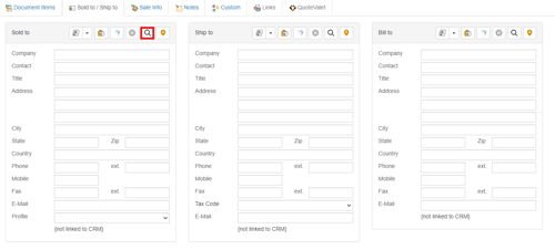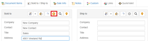 Select the Sold to / Ship to Tab in QuoteWerks and click on the  button next to the Sold to, Ship to, or Bill to fields: