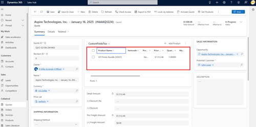 Click on the quote in the opportunity to see a list of the write-in products for this opportunity.