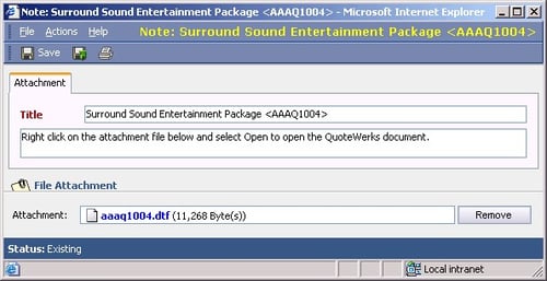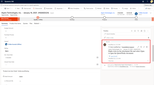 When you view the note, you can right click and choose ‘Open’ to launch QuoteWerks and open that quote.