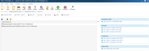 The Auto-Links window creates dynamically generated links on the QuoteWerks Links tab that will link to specific details in MS CRM from the QuoteWerks created quote. These links are automatically created and there is no setup involved to use them.