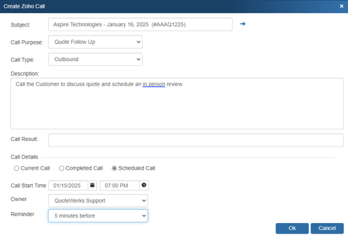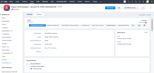 This article takes you through using the Zoho CRM Integration in QuoteWerks. This will show you how to pull Zoho customer records into sales quotes, create deals, follow-up calls and more.