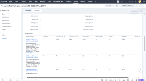 IMPORTANT: Sales Quotes and Line-Item detail are only available in the Professional, Enterprise, and Ultimate editions of Zoho CRM.