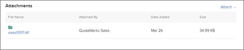 NOTE: The Create or Update document Attachment checkbox will NOT appear if you are saving a quote template. The Create or Attach to Opportunity checkbox will be checked and disabled if the Look for synchronized data in dtf files option is set.