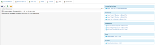 The Auto-Links window creates dynamically generated links on the QuoteWerks Links tab that will link to specific details in Zoho CRM from the QuoteWerks created quote. These links are automatically created and there is no setup involved to use them.