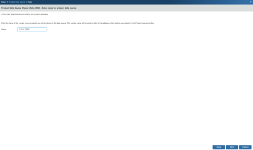 Step 4: In this window enter the name of the vendor whose products you will be storing in this data source. This vendor name will be used to refer to products when looking up products under the Product Lookup window.