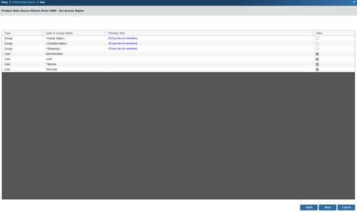 Step 6: If the ‘Individual Product Data Source level security’ has been enabled, the Security step will appear next: