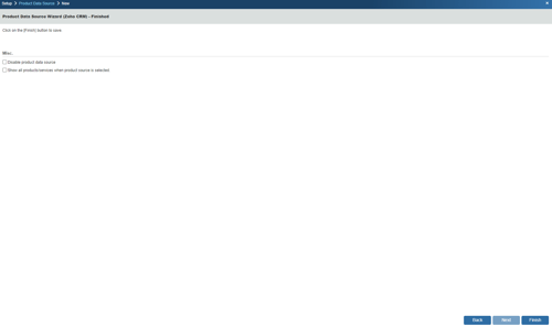 Step 8: Once you click on the [Finish] button it will return you to the Product Data Source Setup window where you can confirm that the link to the ZohoCRM product catalog was established: