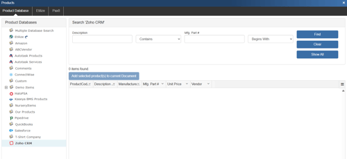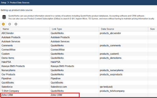 The Professional and Corporate Edition of QuoteWerks can link to ZohoCRM product list. This will save time for customer’s using ZohoCRM that have invested time creating their items in ZohoCRM.