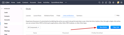 NOTE: You can map additional Zoho CRM fields to QuoteWerks fields following the above schema, or you can remove fields you do not wish to bring over, however the link must have the SoldToCMOpportunityRecID=${Deals.Deal Id} , &SoldToCMCompanyRecID=${Accounts.Account Id} , and &SoldToCMCompanyRecID${Contacts.Contact Id} if using contacts at a minimum.