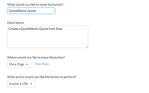 Step 5: Name your button "QuoteWerks Quote" (or a name you prefer)