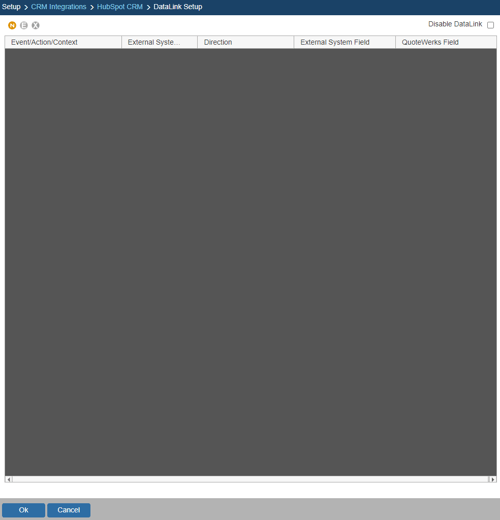 The DataLink Setup window will open. If you have not created a DataLink yet, the field will be blank: