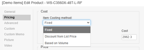 Choosing this method will set the cost of the item based on the quantity of the item being quoted. This costing method is typically used in conjunction with volume pricing. QuoteWerks support 15 volume costing levels.