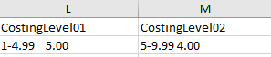 For example, to set the two costing levels outlined above you will want fields that are formatted in the below fashion: