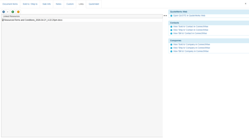 NOTE: There is no limit to the amount of links that can be added to the Links tab, so you can add multiple documents, images, and links to website pages that contain information about each product you're selling, whether for internal reference or your customer's reference. You can also remove a link by right-clicking on the linked resource and clicking Remove Link.