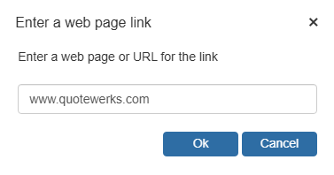 Clicking Add a Web Link will display the Enter web page link window, which provides a box to enter the Web-page URL you wish to link to the quote.