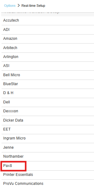1. Select the Real-time tab of the Setup -> Options menu, then select Pax8.