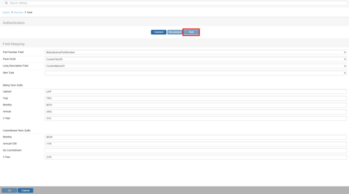 In this section you can set how you want fields to be mapped and how to build part numbers based on the billing and commitment terms.