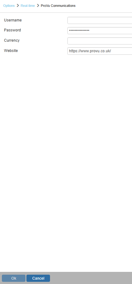 The ProVu Communications Real-Time Pricing & Availability is only available in the UK and Republic of Ireland. Before you can setup and use the ProVu Communications Real-time Pricing & Availability features, you will need to obtain your credentials. This is the same Username and Password that you use to log into the ProVu ProSys website.
