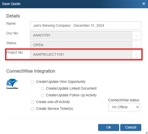 QuoteWerks automatically assigns unique project numbers to all new documents.