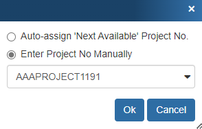 NOTE: If the user has the Misc Access right of “CannotManuallyModifyProjectNo”, the ellipses button will be disabled.