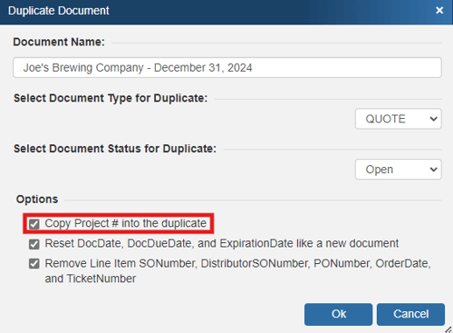 When a quote is converted to an order, and you choose the “Preserve the Quote” option, the project number from the quote is copied into the new order. This allows you to see which quotes are related to which orders. The same applies when converting a quote/order to an invoice. In addition, QuoteWerks will copy the project number into any revisions of quotes, orders, and invoices.