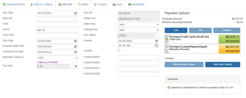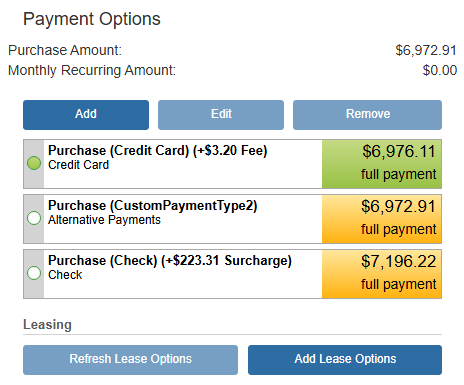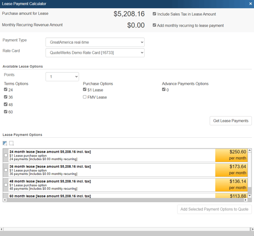 Visit the Lease Payment Options section of this manual to create a lease payment for your quote.