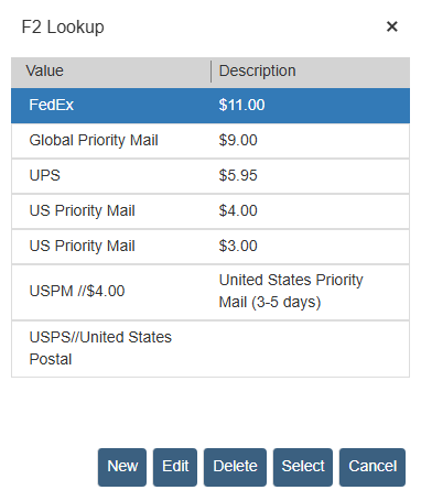 The Ship Via field stores the quote’s shipping method. Double-click within the field, press the [F2] key on your keyboard, or click