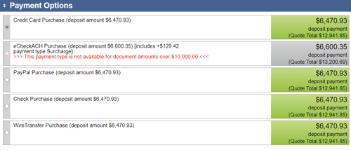 NOTE: Advanced users can limit which payment options are available to add to documents in QuoteValet. This is done in the Settings Manager in using this setting: