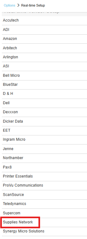 1. To setup Supplies Network Real-time pricing and availability navigate to Setup > Options > Real-time and select Supplies Network.