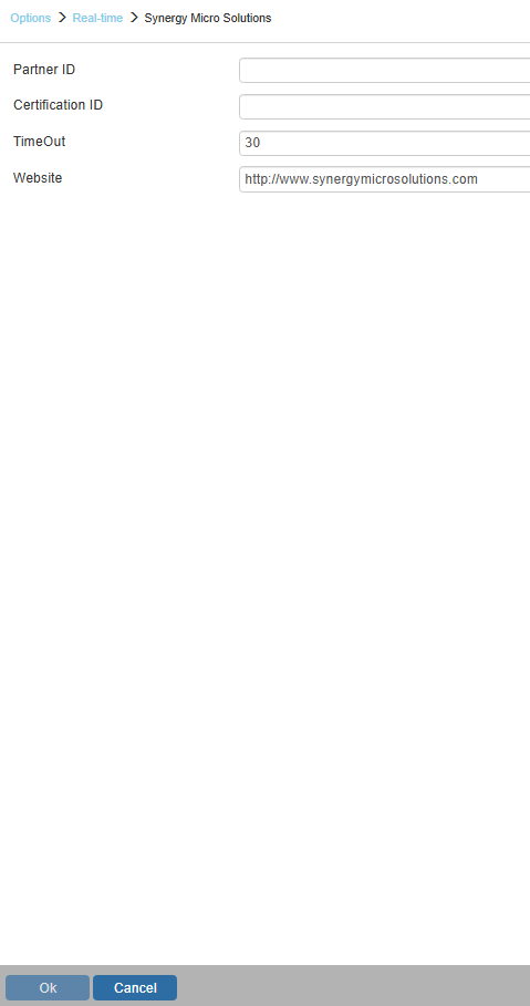 2. Input your Partner ID, Certification ID, TimeOut, Website, and click [OK].